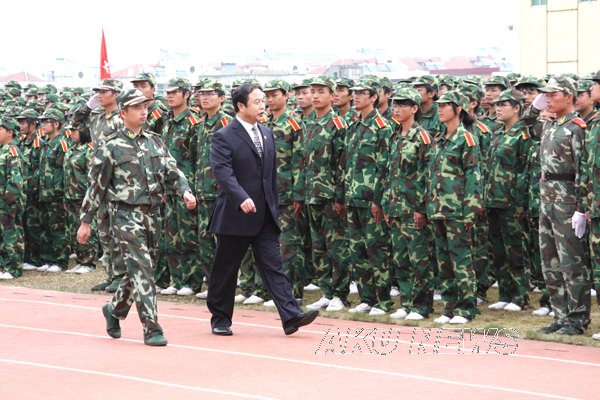 9月28日上午,我院09级新生军训总结表彰大会在学院东校区田径运动场隆重举行。院长王兴林、党委副书记胡鸿晓、副院长杨行玉、武警安康支队副政委刘兴斌、武警安康支队教导队大队长徐信军出席了大会,军训领导小组全体成员参加了总结表彰大会。大会由杨行玉主持。